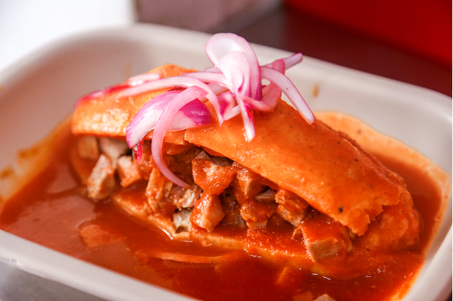 Torta ahogada: Es el platillo más icónico de Guadalajara que consiste en un bolillo salado relleno de carnitas y bañado en salsa de jitomate o chile de árbol, para los que les guste el picante. Para darle un toque final se recomienda disfrutar con cebolla encurtida y limón. La podrás encontrar en el centro y los alrededores de la Perla Tapatía, pero sin duda las “Tortas Ahogadas José El de la Bicicleta” son las más emblemáticas, su estilo tradicional y al ser servidas en bolsas de plástico hacen que sea una experiencia única y auténtica.