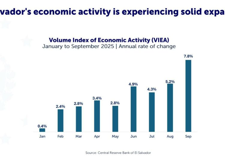 El Salvador. El Presidente Nayib Bukele destacó este miércoles un nuevo informe del Banco Central de Reserva (BCR) que confirma una aceleración sostenida en la actividad económica del país, señalando que “el dividendo de seguridad también comienza a pagarse económicamente”. La afirmación acompaña una gráfica oficial que muestra un incremento constante en el Índice de Volumen de la Actividad Económica (IVAE) entre enero y septiembre de 2025.