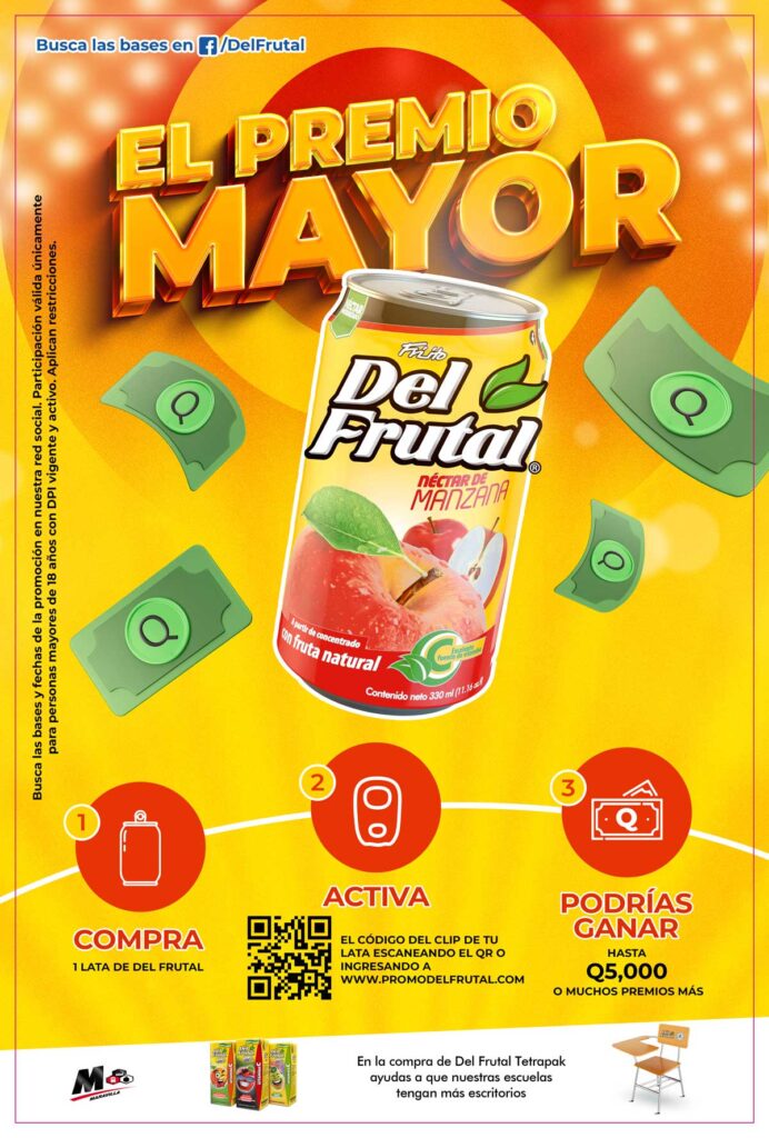 Para participar, los consumidores deben comprar su sabor favorito de Del Frutal en presentación lata en cualquier punto de venta del país, destapar y registrar el código que encontrarán al reverso del clip de la lata, escanear el código QR o ingresar a la página www.promodelfrutal.com en donde podrían ser ganadores de uno de los boletos a la gira “El Premio Mayor Del Frutal” y obtener hasta Q5,000.00 o muchos premios.