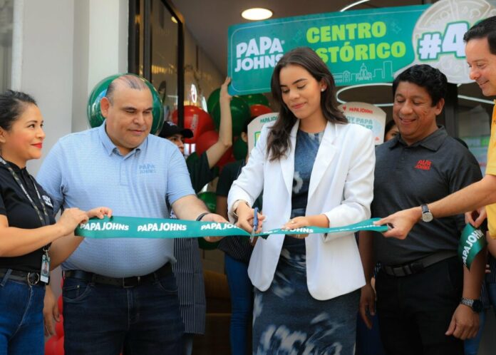 Sofía Somoza, directora de mercadeo e imagen de la Autoridad del Centro Histórico, señaló: “Estamos inaugurando la sucursal número 46 de Papa John’s en el Centro Histórico de San Salvador. Hoy celebramos no solo la apertura de este comercio, sino que también estamos apoyando a más de 25 familias que ahora son parte de esta empresa. Esta inversión consolida todo el trabajo conjunto que hemos hecho de la mano del Gobierno del Presidente Bukele”.