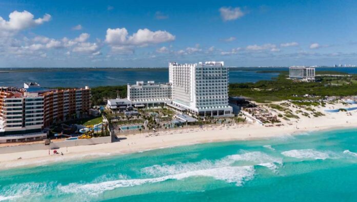 RIU Hotels & Resorts acaba de inaugurar un nuevo hotel en México: el Riu Ventura, situado justo al lado de la icónica Playa Delfines en la zona hotelera de Cancún. Este hotel representa una nueva apuesta por la calidad y diversificación en el producto, diseñado para ofrecer una experiencia vacacional completa bajo el reconocido concepto Todo Incluido 24 Horas de RIU. Entre sus grandes novedades destaca una zona exclusiva solo para adultos con piscina y un sky bar ubicados en la sexta planta, el cual representa una gran novedad de RIU en México.
