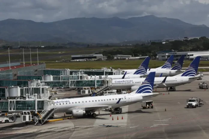 También un vuelo de Copa partió con retraso a la capital colombiana y en la programación de la aerolínea están otros dos a Panamá. En pantalla hay un itinerario hacia La Habana y otro a Cancún a través de la estatal venezolana Conviasa.