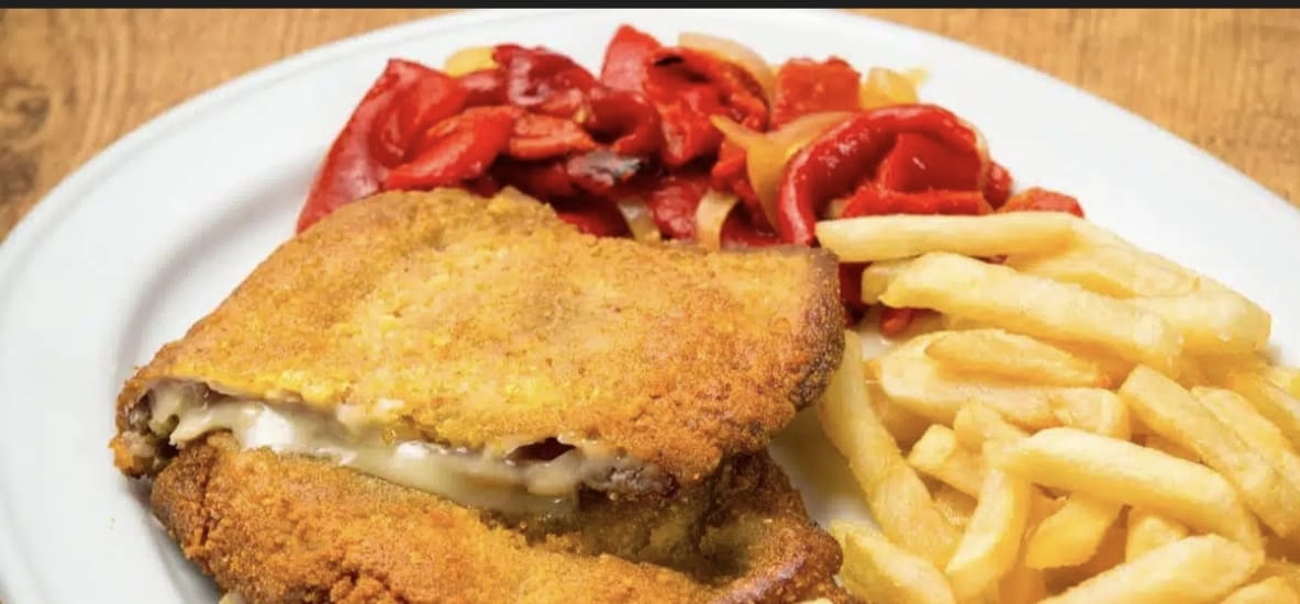 Freír en abundante aceite caliente y servir acompañado de papas fritas y como decoración un pimiento piquillo Rojo encima.