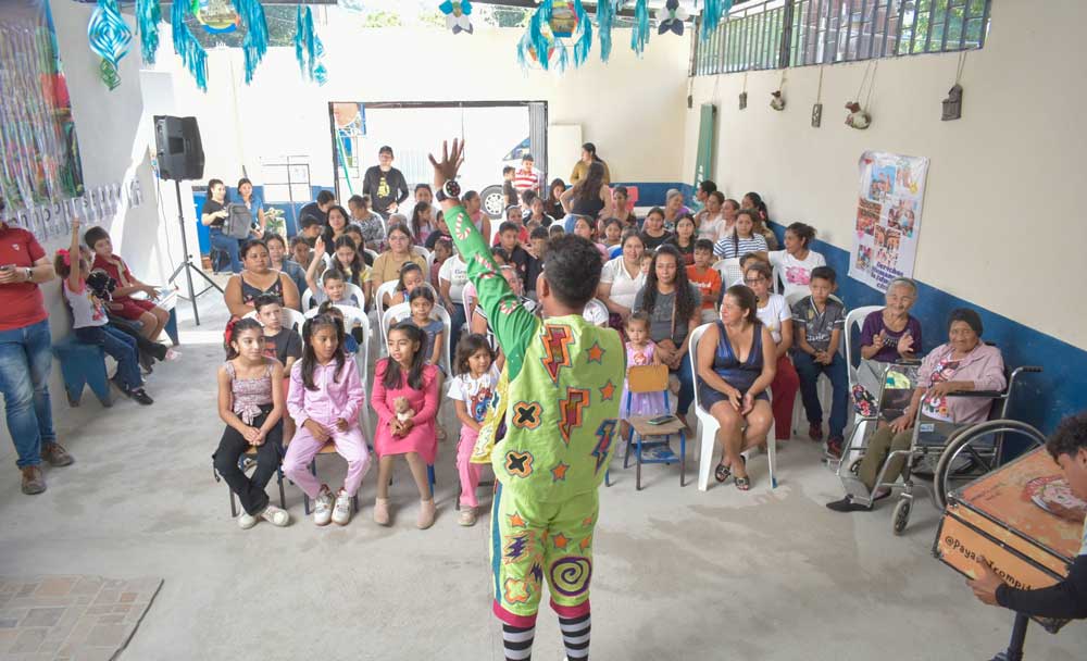 Uno de los momentos más significativos fue la participación del payaso Trompito, quien, a través de dinámicas lúdicas y mensajes sencillos, abordó con los comunitarios la importancia de la solidaridad, la comunicación y la necesidad de realizar acciones coordinadas para fortalecer la convivencia comunitaria. Este enfoque permitió transmitir mensajes clave de manera cercana y accesible, especialmente para niñas y niños.
