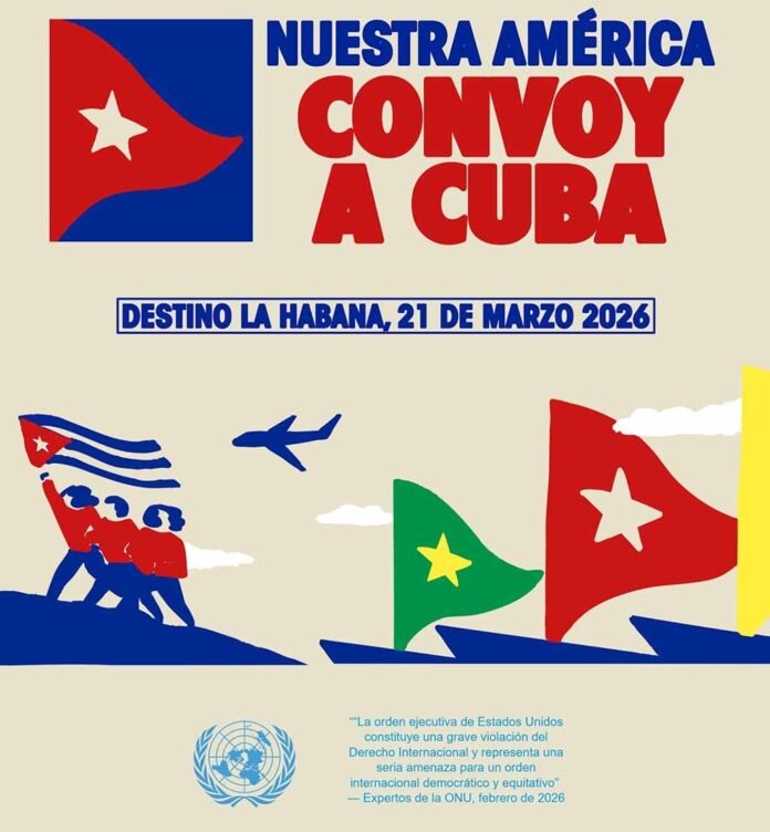 Representantes de organizaciones sociales, junto a amigos de la solidaridad, arribaron este 19 de marzo al capitalino aeropuerto internacional José Martí, como parte del Convoy Nuestra América en apoyo a Cuba.