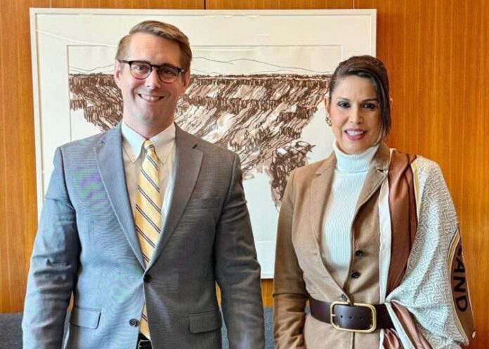 El Salvador. La embajadora de El Salvador en Estados Unidos, Milena Mayorga, sostuvo un encuentro en Washington, D.C. con Riley M. Barnes, Subsecretario de Democracia, Derechos Humanos y Trabajo del Departamento de Estado.