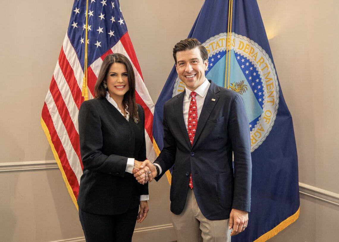 La embajadora Milena Mayorga sostuvo un encuentro clave con Luke J. Lindberg, Under Secretary for Trade and Foreign Agricultural Affairs del Departamento de Agricultura de Estados Unidos (USDA), donde se coordinó el envío de una misión de trabajo compuesta por 35 miembros —expertos, empresarios y funcionarios agrícolas estadounidenses— que visitará El Salvador próximamente.
