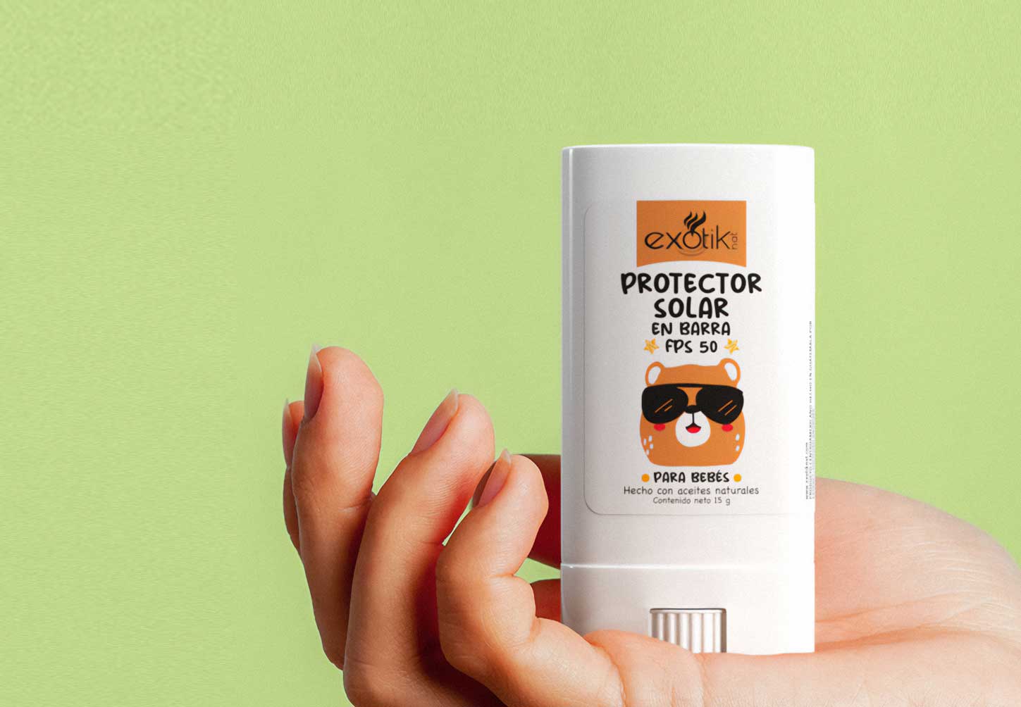 Exotik Nat también ofrece alternativas para proteger a los más pequeños con el protector solar mineral en barra Exotik nat Baby Care SPF 50, elaborado con aceites naturales, ideal para la piel delicada de los bebés.