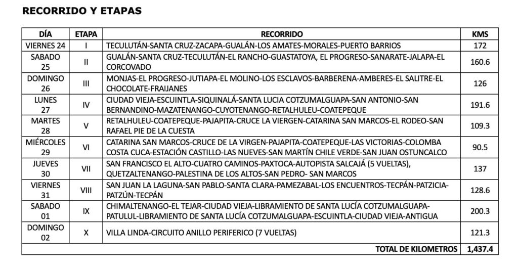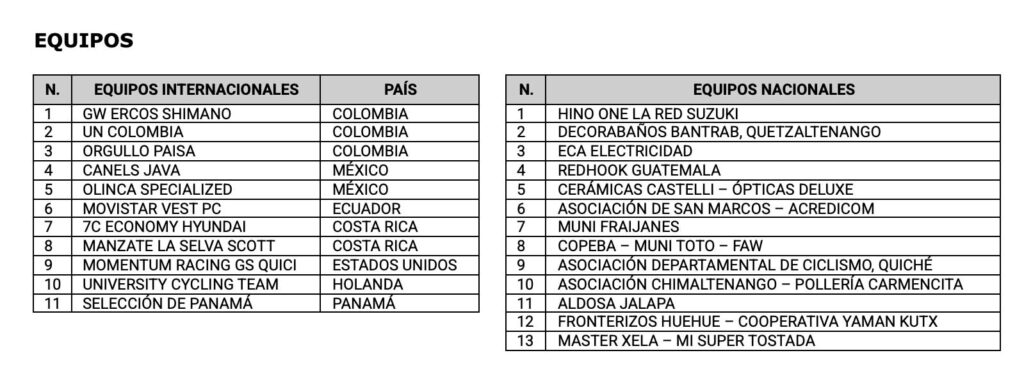 «Esta edición de la Vuelta Ciclística a Guatemala es el resultado de una planificación rigurosa y un compromiso profundo con el desarrollo del ciclismo. Este año buscamos, no solo ofrecer una competencia de alto nivel, sino también promover el talento deportivo en escenarios exigentes. Una oportunidad para que todos atletas proyecten sus competencias y pasión por este deporte», agregó Luis Laguardia, gerente de la Federación Guatemalteca de Ciclismo.