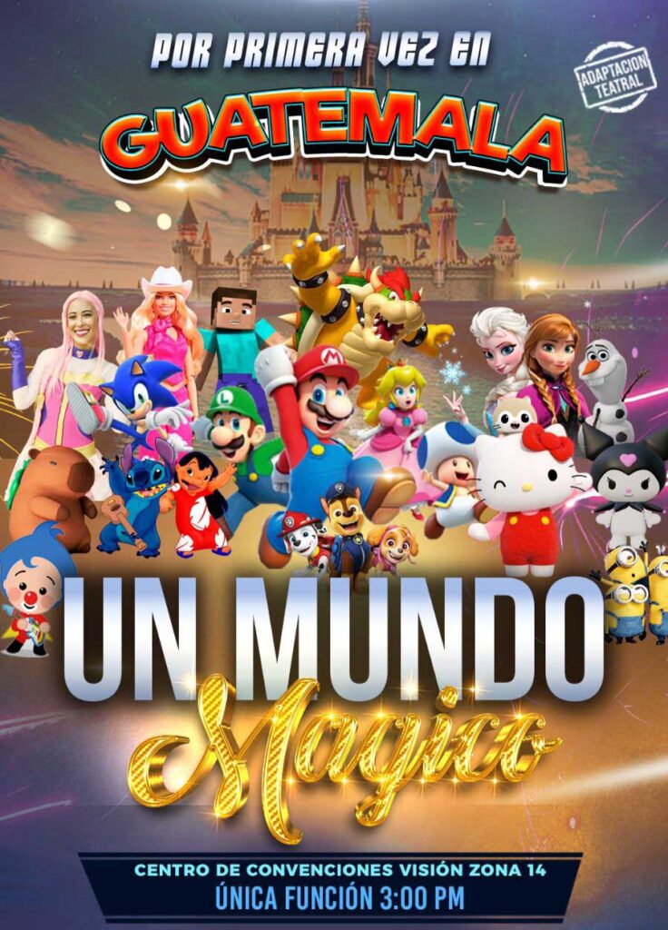 Los personajes más queridos de la televisión y el cine se unirán en un espectáculo familiar que promete momentos inolvidables para grandes y pequeños: Un Mundo Mágico en Guatemala 2025. La puesta en escena ofrecerá una experiencia llena de música, fantasía y diversión, invitando a los niños a interactuar, cantar, bailar y disfrutar de una adaptación teatral que los transportará a un mundo de imaginación.