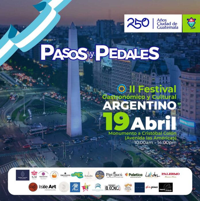 Guatemala. El próximo domingo 19 de abril, la Plaza Colón (Av. de las Américas) se llenará de los aromas, ritmos y colores de la Argentina con la llegada del II Festival Gastronómico y Cultural Argentino a Pasos y Pedales, un evento para toda la familia, que se desarrollará de 10:00 AM a 2:00 PM con entrada libre y con el apoyo institucional de la Embajada Argentina en Guatemala.