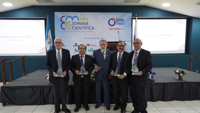 Durante el Acto Principal donde se presentó la reseña de la SEMANA CIENTÍFICA del Hospital Centro Médico, que se llevó a cabo el día de hoy 8 de octubre 2025, en el Auditorio Dr. José Fajardo, ubicado en Centro Médico, zona 10; además de contar con la presencia del Consejo de Administración y varios médicos del Hospital, también se realizó la entrega de reconocimientos a los Médicos de la institución, con una trayectoria profesional de 25 y 50 años. Motivo por el cual, fueron reconocidos por Centro Médico dando un realce a la Semana Científica XXVI, confirmando el profesionalismo y dedicación del personal profesional del Hospital Centro Médico.