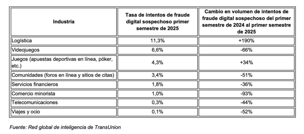 Entre las industrias analizadas a nivel global, el sector de videojuegos registró el mayor porcentaje de intentos de fraude digital sospechoso en el primer semestre de 2025, alcanzando el 13,5%. Esto representa un aumento significativo del 28% en volumen, en comparación con el mismo período de 2024, lo que subraya la creciente vulnerabilidad de este sector frente a actividades fraudulentas. Para las transacciones realizadas desde Guatemala, la industria logística registró el mayor porcentaje de intentos de fraude digital sospechoso en el primer semestre de 2025, con un 11,3%.