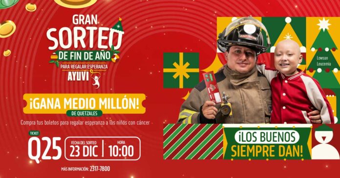Guatemala. La Fundación Ayúdame a Vivir –AYUVI–, presenta el Gran Sorteo de Fin de Año, una iniciativa de recaudación de fondos que tiene como objetivo brindar tratamiento integral y sin costo a niños con cáncer en Guatemala. Con un ticket de Q25.00, los guatemaltecos pueden sumarse a esta causa solidaria y participar por el gran premio de medio millón de quetzales.