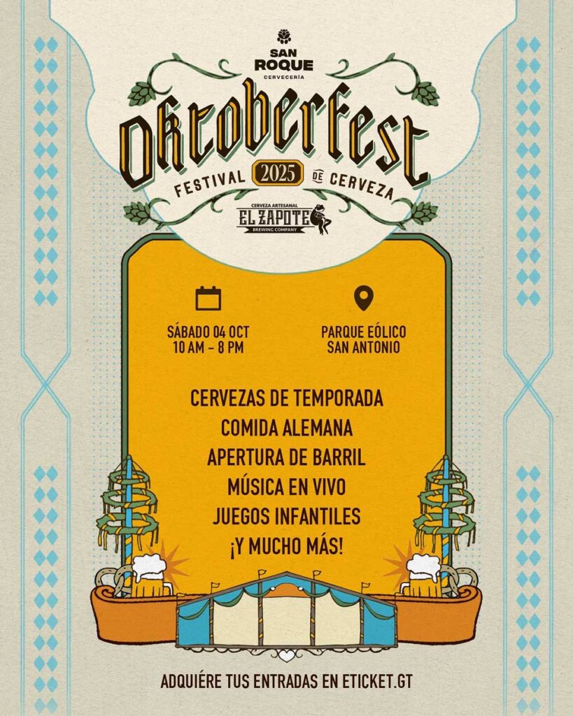 Guatemala. La auténtica fiesta alemana llega a Guatemala de la mano de El Zapote Brewing Company y Cervecería San Roque, con el esperado Oktoberfest 2025, un festival lleno de tradición, música, gastronomía y, por supuesto, mucha cerveza. La celebración se realizará el próximo sábado 4 de octubre en el Parque Eólico San Antonio, ofreciendo un ambiente familiar y festivo en medio de un entorno único.