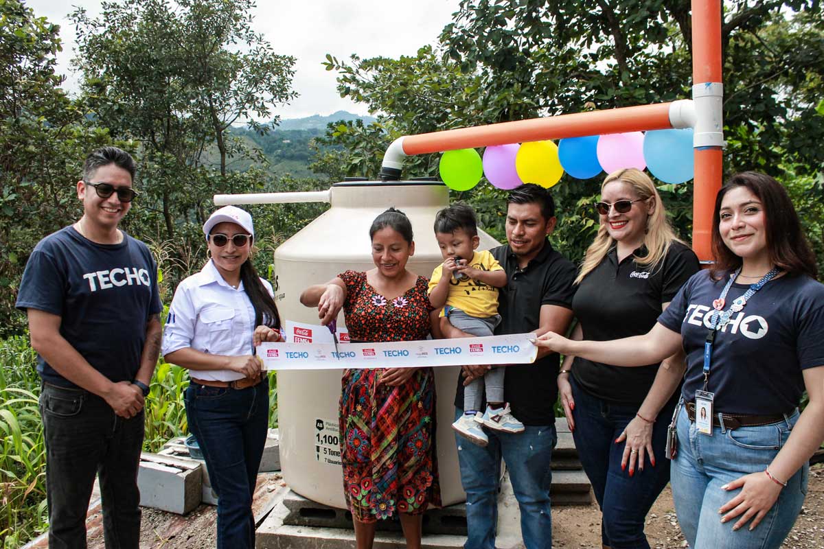 Guatemala. TECHO en Guatemala, en alianza con Coca-Cola FEMSA y HogaRES, inauguró la entrega de sistemas de captación de agua de lluvia y pisos saludables en el Caserío Los Caneles, Aldea Montúfar, San Juan Sacatepéquez, como parte del proyecto habitacional de viviendas definitivas.