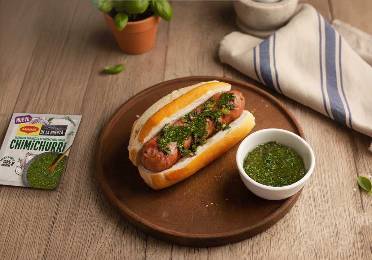 Para esta preparación, se utilizarán 184 bollos de pan artesanal de 60 centímetros de largo, 134 kilos de chorizo y 150 sobres de Chimichurri Maggi® De La Huerta; ingrediente estrella que aporta un sabor único, gracias a su mezcla de hierbas, vegetales y especias, con ajo y perejil 100% naturales.
