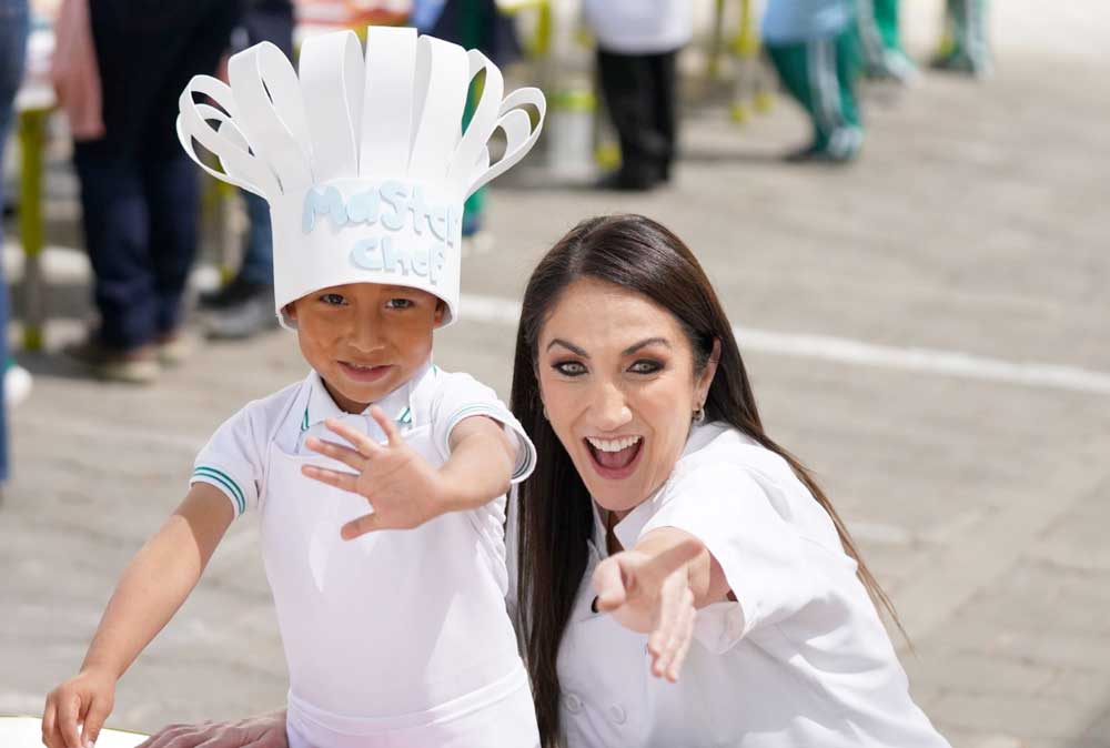 Uno de los momentos más significativos de la jornada fue el espacio de interacción con estudiantes del Colegio Enrique Novella Alvarado, donde la chef compartió experiencias y conocimientos a través de la cocina, promoviendo el aprendizaje práctico y el trabajo colaborativo.