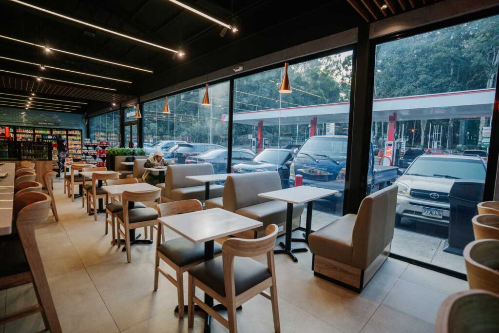 La transformación alcanza su punto máximo en la tienda de conveniencia Súper 7. Bajo una visión arquitectónica moderna que utiliza materiales orgánicos e iluminación envolvente, el espacio ha dejado de ser un lugar de paso rápido para convertirse en un entorno similar a un café moderno.