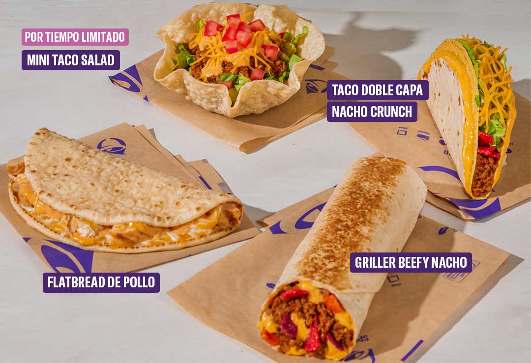El menú se complementa con más alternativas pensadas para todos los gustos: Taco suave picante de papa a tan solo Q10, Griller Beefy Nacho a Q12, Taco doble capa Nacho Crunch y Flatbread” de pollo a Q15.