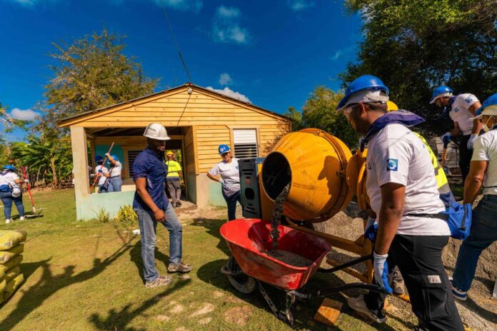 República Dominicana. Voluntarios del Banco Popular Dominicano, en alianza con Hábitat para la Humanidad República Dominicana, realizaron una jornada de trabajo en la comunidad de Duzón, municipio de Yaguate, mediante la cual se construyeron pisos de concreto en cinco viviendas y se remozó una cancha deportiva, con la participación de alrededor de 200 personas.