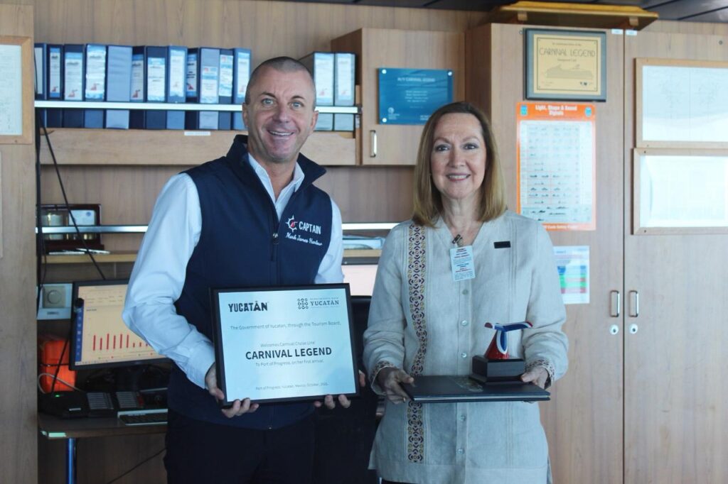 Durante la ceremonia de bienvenida se llevó a cabo el tradicional intercambio de placas conmemorativas entre representantes de la naviera y autoridades estatales, portuarias y municipales, como símbolo de amistad, cooperación y fortalecimiento de los lazos entre Yucatán y Carnival Cruise Line.