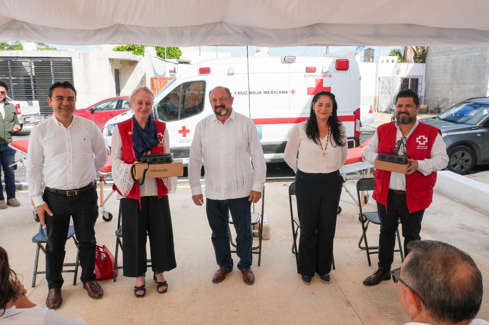 El titular de la Sefotur, Darío Flota Ocampo a nombre de la naviera, entregó dos camillas y dos equipos de radio comunicación para las ambulancias con una inversión de cerca de 85 mil pesos. En representación de la organización, Michelle Byrne de Rodríguez delegada estatal y consejera nacional de Cruz Roja Mexicana, agradeció la aportación que permitirá dar servicio a los progreseños y visitantes.