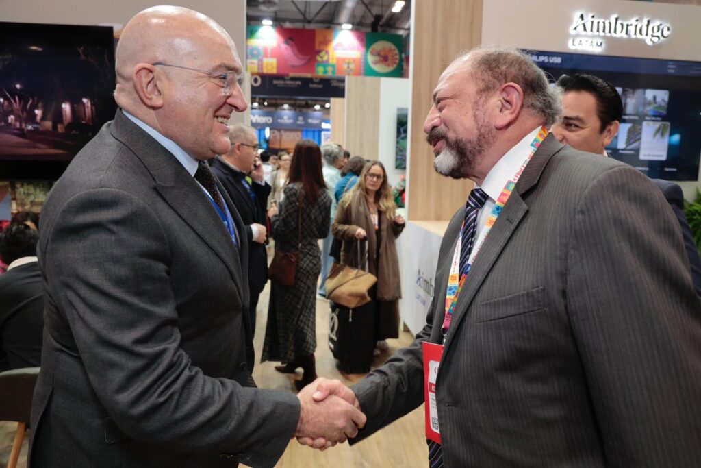 El encuentro se llevó a cabo en el stand de Yucatán en Fitur y fue encabezado por el secretario de Fomento Turístico, Darío Flota Ocampo, y el alcalde de Valladolid, España, Jesús Julio Carnero García. También participaron la concejala delegada de Turismo, Eventos y Marca Ciudad, Blanca Jiménez Cuadrillero, y el subsecretario de Desarrollo Turístico Sustentable, Raúl Paz Noriega.